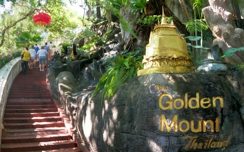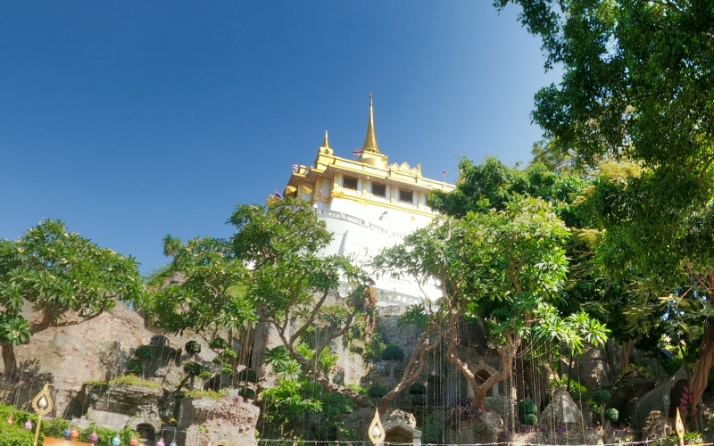 344段の階段を登ると黄金の仏塔とバンコク市街の絶景が広がり、人気の写真スポットとしても知られています。 -
