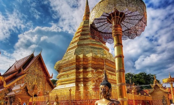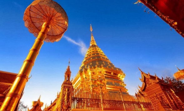 チェンマイを代表するドイステープ観光とケシの栽培技術をタイにもたらしたといわれるメオ族の村を観光します。ドイステープ寺院は、海抜1,053mの山頂にあり、1384年に建設されました。山頂までは舗装された道路が続き、そこから山頂寺院まで徒歩で300段の階段を登ります。その手すりには、タイの神話に出てくる二匹の大蛇が彫刻されております。