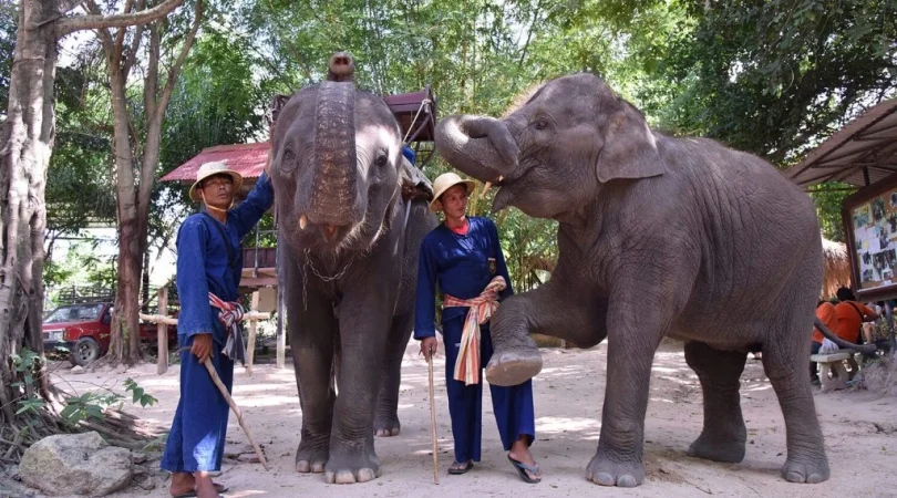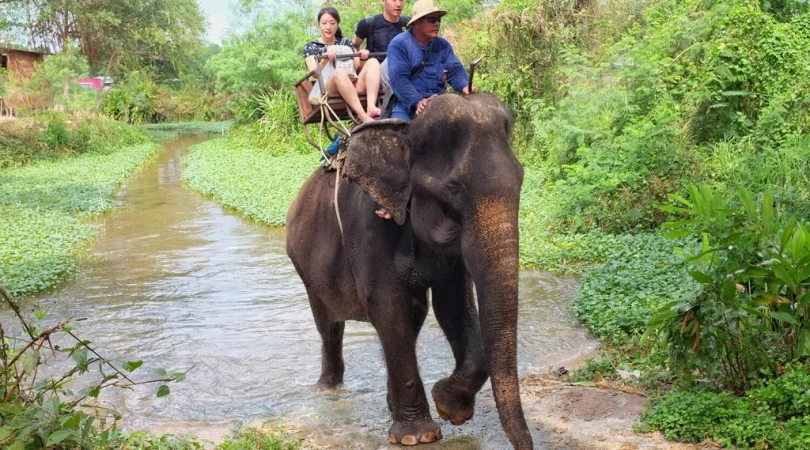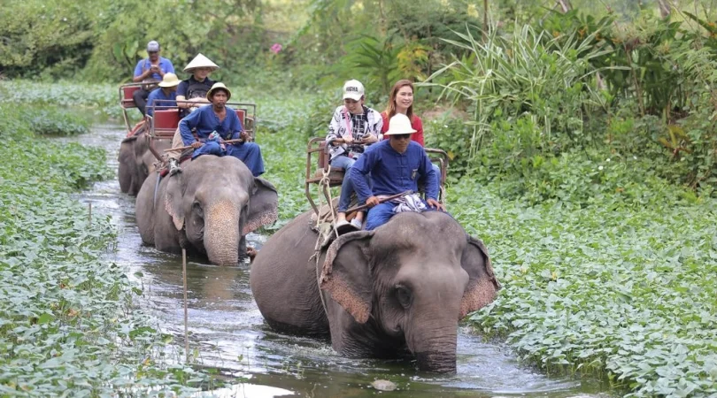パタヤ・エレファントビレッジ自然満喫ツアー 象乗り体験+ジャングルトレッキング+タイシルク工房見学+いかだ川下り体験+牛車乗り体験<英語ガイド/1日/ビュッフェ昼食付/パタヤ発着>