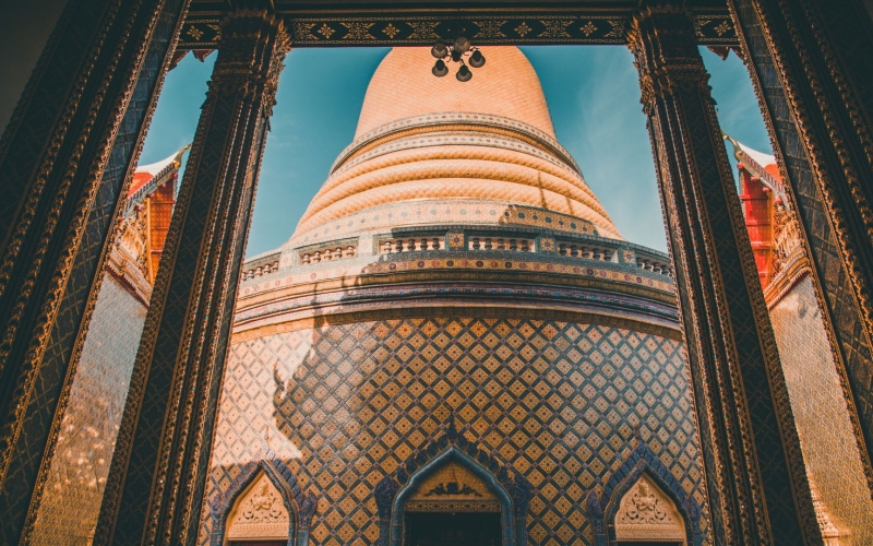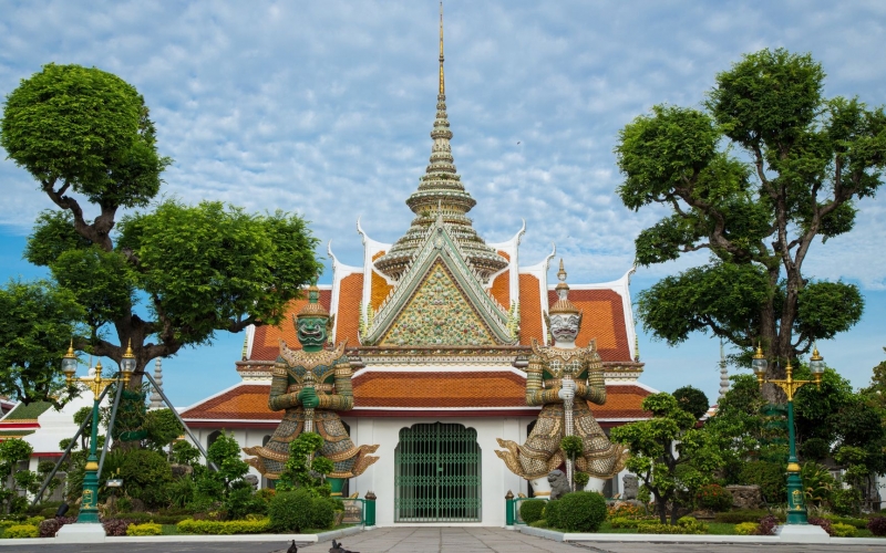 チャオプラヤ川沿いにそびえる美しい仏塔が目を引く、バンコクを代表する寺院です。