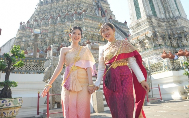 タイ民族衣装で映え旅スタート!「ワット・アルン」からご案内