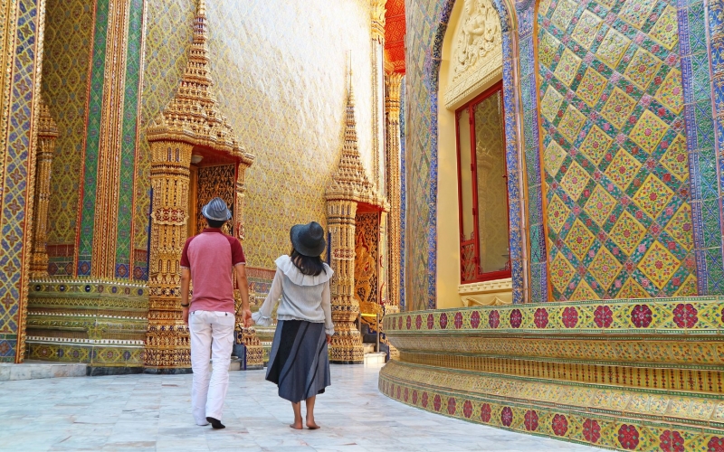 豊富な衣装の中からお好みの1着を選んで着替えたら、バンコク市内の有名寺院へ。観光を楽しみながら、写真撮影はガイドがお手伝い。衣装のまま寺院を巡れるので、どこで撮っても華やかでフォトジェニックな時間をお楽しみいただけます。