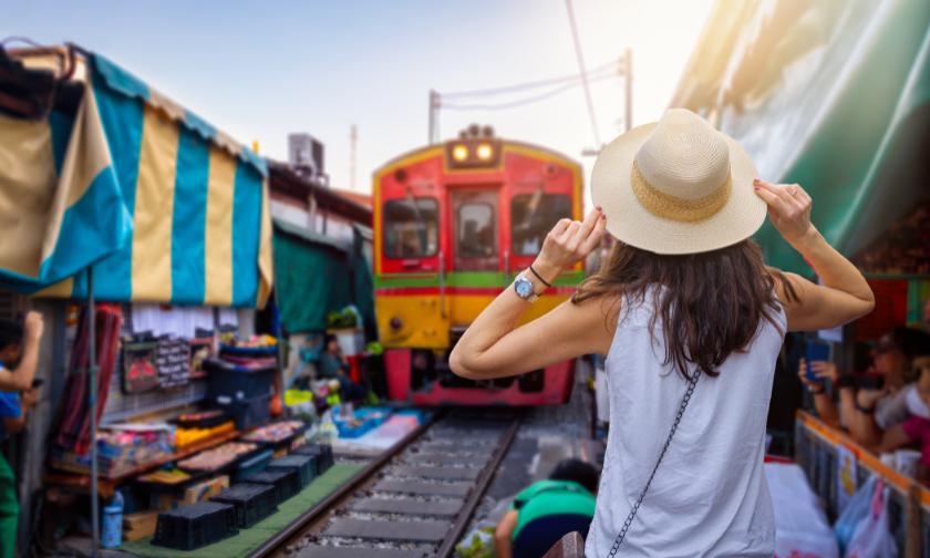 【バンコク 空港お迎え付きプラン】ピンクのカオマンガイの朝食付き!ダムヌンサドゥアック水上マーケット + メークロン線路市場