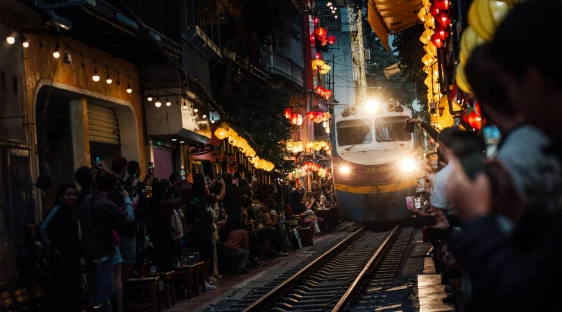 トレインストリートは安全規制により、事前の予告なく入場が制限される場合がございます。万が一、当日入場できない場合は、代替案としてロンビエン橋の線路散策と、ロンビエン駅にあるカフェ「Hỏa xa Coffee」での1ドリンク提供へ切り替えてご案内いたします。