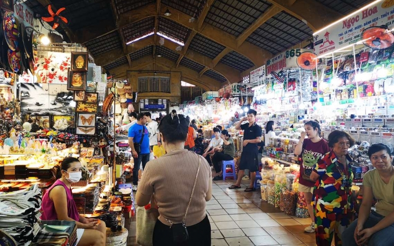 雑貨や日用品、青果等の様々な店がひしめき合うホーチミン最大の活気ある市場