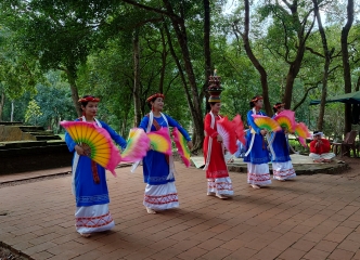 ガイドの都合?とのことで、予定よりも30分ほど前倒しの7:30出発となりましたが、結果的に大正解! 現地に到着した時点で、先客は3グループほどであり、ゆっくりと観光したり、写真撮影することができました。 30分後から団体ツアーが到着し始め、1時間後には多くの団体ツアーが到着。写真撮影が困難な状況になりました。 遺跡自体はこぢんまりとしており独特な雰囲気を感じることができ、10分間ほどの民族舞踊も見学することができました。